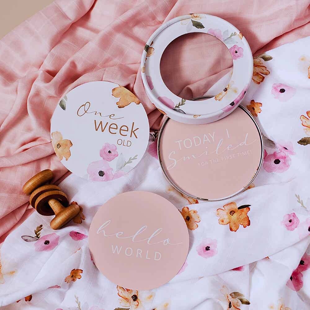 Capture your baby's milestone moments and document their 'firsts' in photographs to treasure for a lifetime with our Poppy & Musk Pink Milestone Cards. This 2 in 1 pack contains 25 Reversible milestone cards that coordinate with a range of our products.